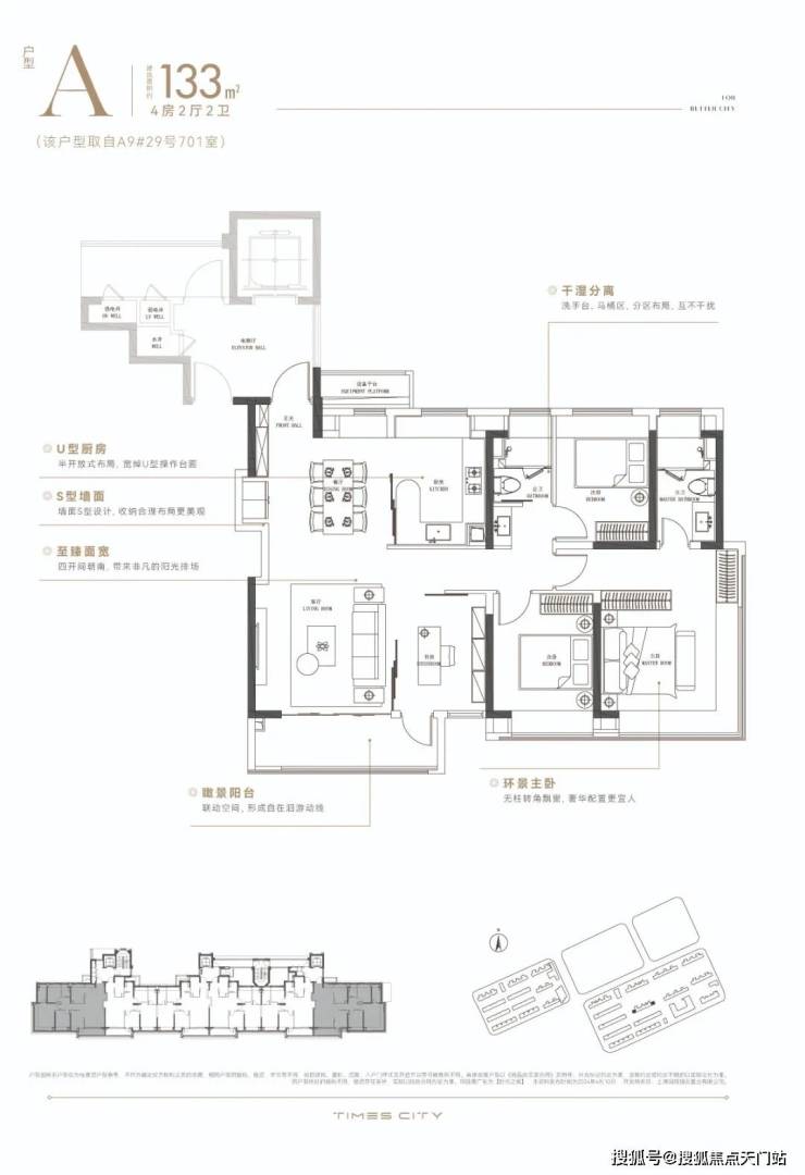 华润置地时代之城高层产品将百平上下的改善户型做出了轻奢级的居住体验,把约133㎡的改善四房做出了豪宅的尺度感。