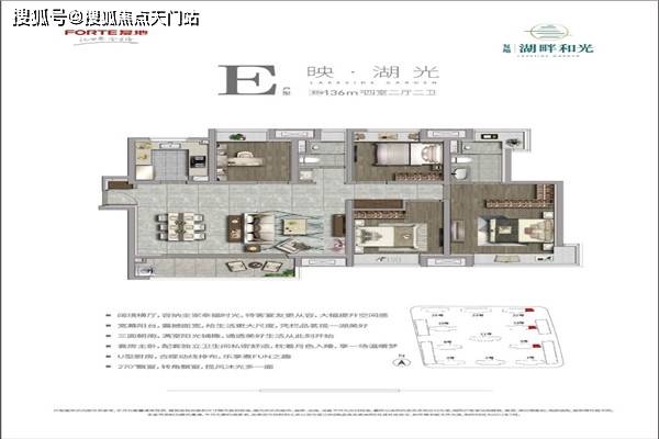 ⑤:建面约136㎡(17套) :四房两厅两卫