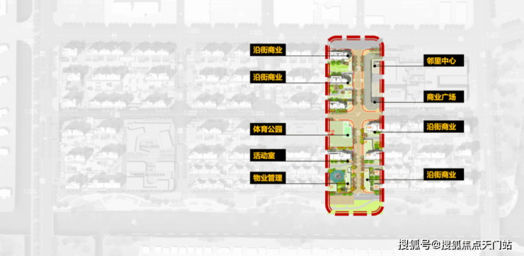 一轴:幼儿园、体育公园、快递驿站、文化活动空间等