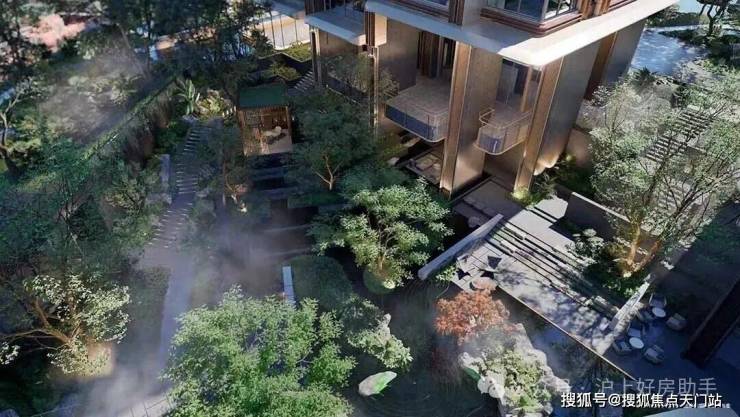 金茂领先的产品力,定义上海豪宅的全新范式。社区整体抬高1.3-1.4米,形成“玉盘托珠”格局,从城市道路步入社区,需要拾级而上,成就上海首个悠谷式归家谧境;另外,社区的抬高在营造私密感的同时,也把河道景观引入社区,形成隐私屏障与观景露台。