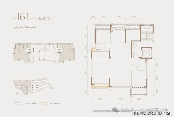 建面约172㎡四房两厅三卫;双主卧+270°飘窗这才是三代同堂的终极改善!