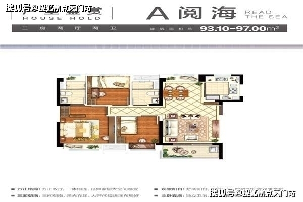 建面约:93-97㎡ 总价:219万-320万 3房2厅2卫
