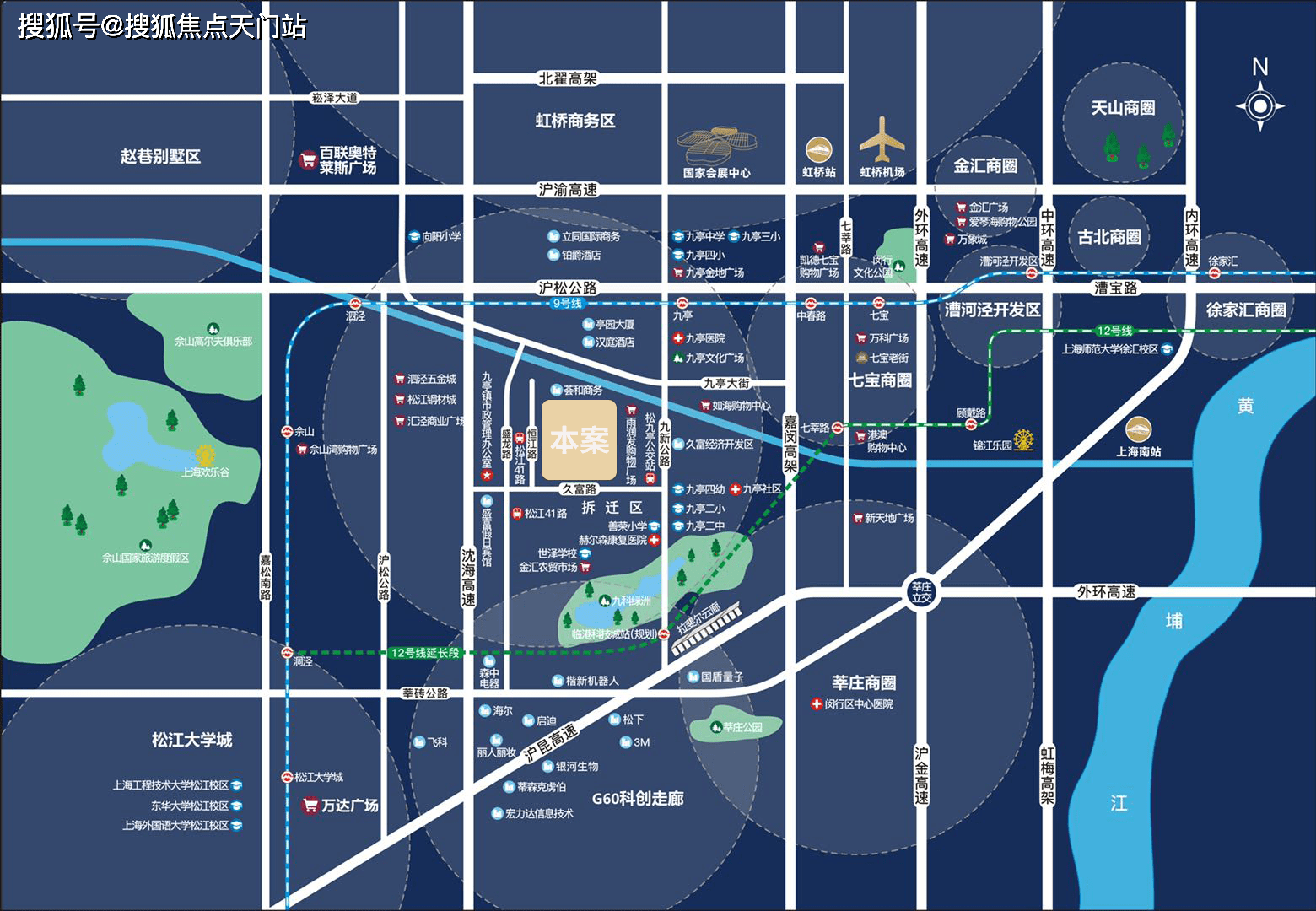 4桥虹商务区+G60科创走廊人才公寓+九亭镇中心,居住人群密集