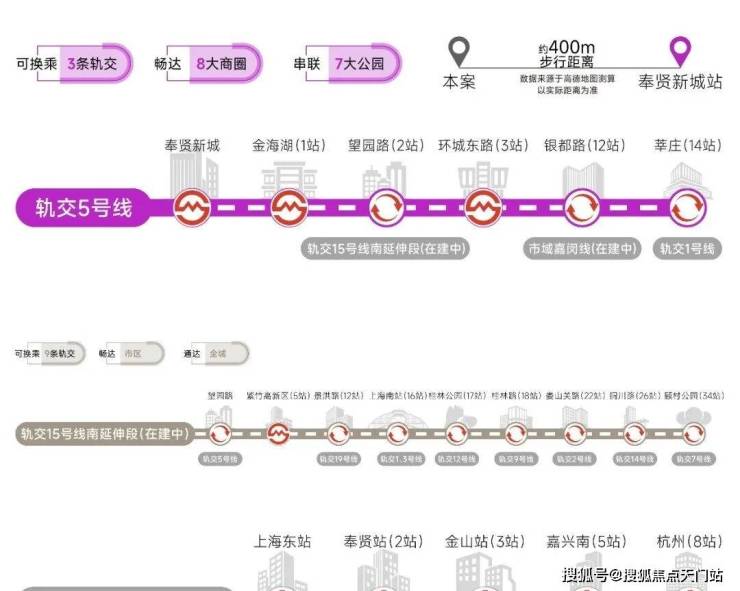 交通方面:项目多轨交环绕,5号线、15号线南延伸段(在建中)、市域嘉闵线南延伸段(规划中)、沪乍杭高铁(规划中)及南枫线(在建中)