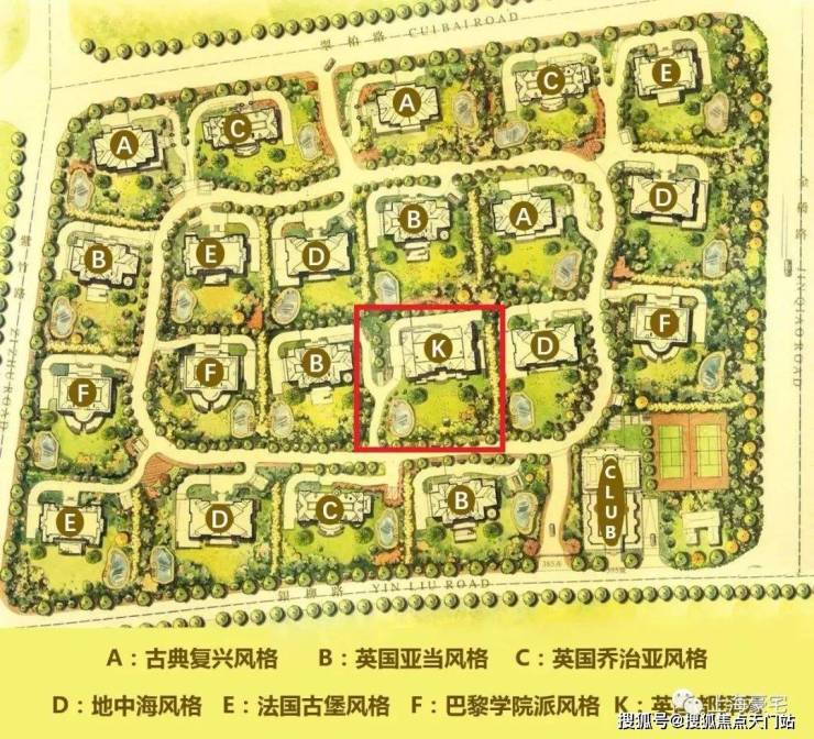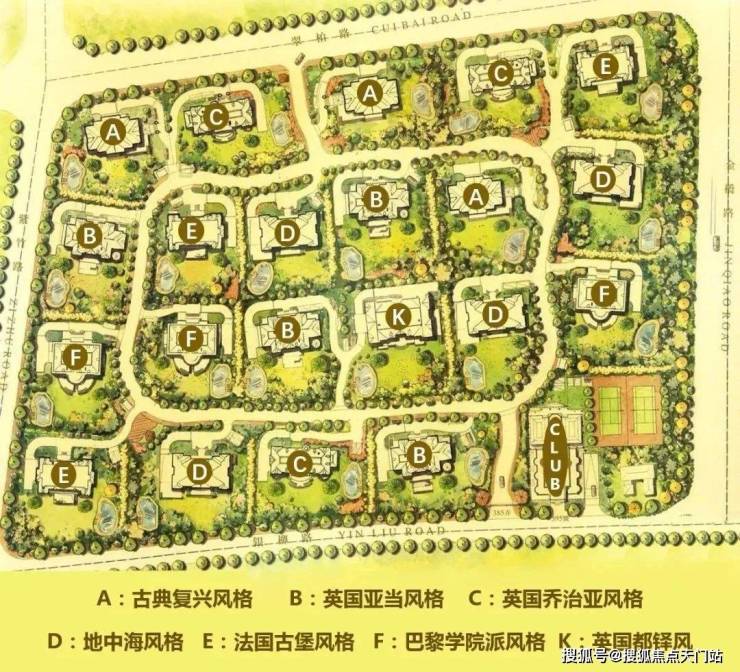 不同风格的建筑交叉分布于整个社区,绝大多数别墅的四周都至少有三种不同风格的建筑,四下望去,满眼尽是是不同的欧式风情。
