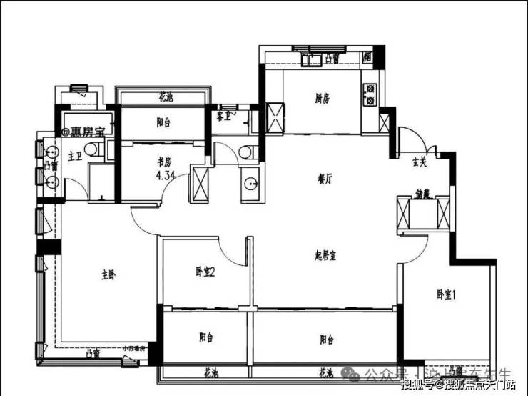 建面约125㎡4房2厅2卫(过程稿仅供参考,以开发商发布信息为准 )