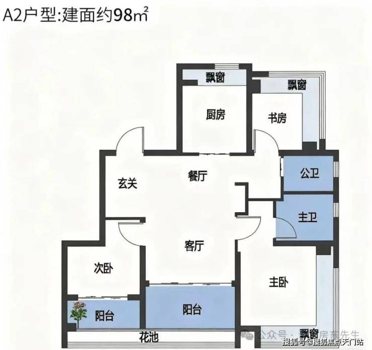 建面约98㎡3房2厅2卫(过程稿仅供参考,以开发商发布信息为准 )