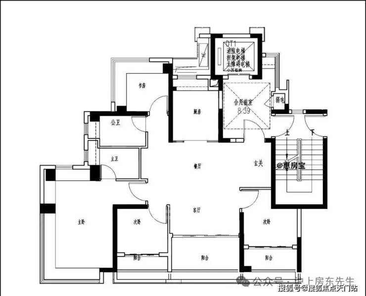 一梯一户,独立电梯厅,四开间朝南,LDKB一体化设计,南北直通,厨房附赠飘窗,客厅面宽约3.8米,南向三阳台;