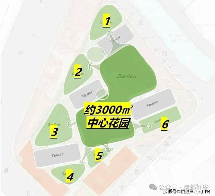 景观方面,「外滩瑞府」通过建筑楼体的偏转,形成了围合式的景观布局。由此,项目做出 了约3000㎡尺度宏大,连续贯穿的核心中央花园,并利用楼栋布局与边界形成夹角,自然衍生出6个小型花园组团。