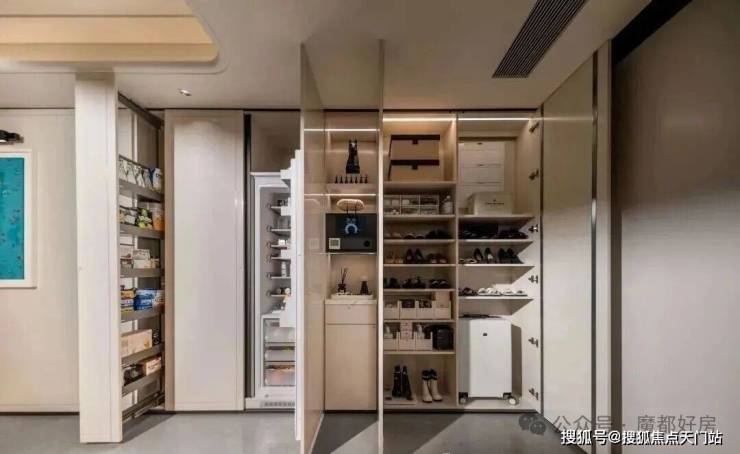 项目的 收纳系统也做得让人叹为观止。以124户型举例,步入玄关,就有约6米长的交付空间装得下生活的所有琐碎。