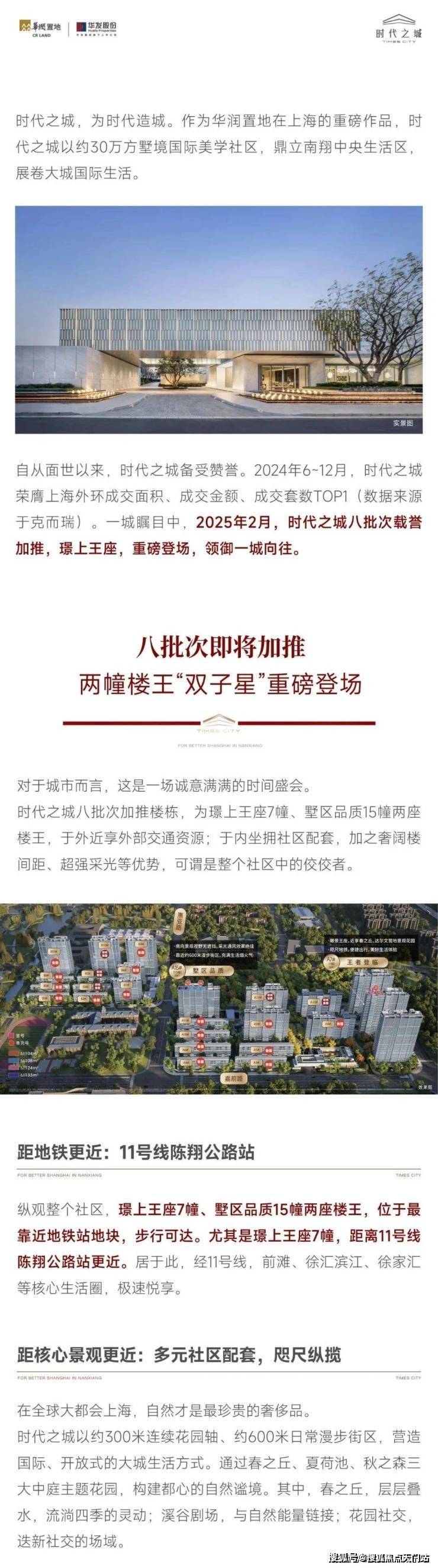 时代之城由华润置地与华发股份强强联手打造,两大实力开发商凭借着丰富的经验和卓越的品牌影响力,致力于为南翔乃至整个上海带来一场人居变革。项目择址南翔正核中央生活圈,地处云翔板块,这里不仅是南翔可持续发展的重要区域,更承载着南翔乃至嘉定 2035 发展目标的使命,拥有着无可比拟的文教、产业、生态优势,未来发展潜力无限。 预约咨询热线:400-118-3159☎