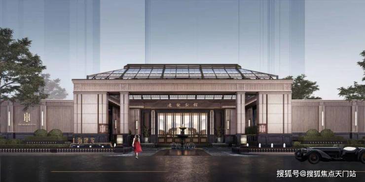 入口形象:超20米宽、10米高奢华门仪,采用高奢复古石材。