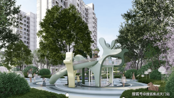 社区景观打造了“一园十境”的多样布局,多样的互动景观大大提升了业主的居住氛围及社区生活体验。比如伴随孩童成长的,以树枝形态构建有记忆的主题滑梯,丰富孩子的课余生活;