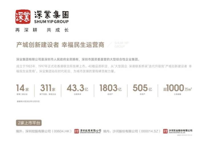 项目的开发商是拥有️雄厚开发实力的国企——深业集团,是深圳市人民政府全资拥有,深圳市国资委直管的大型综合性企业集团。
