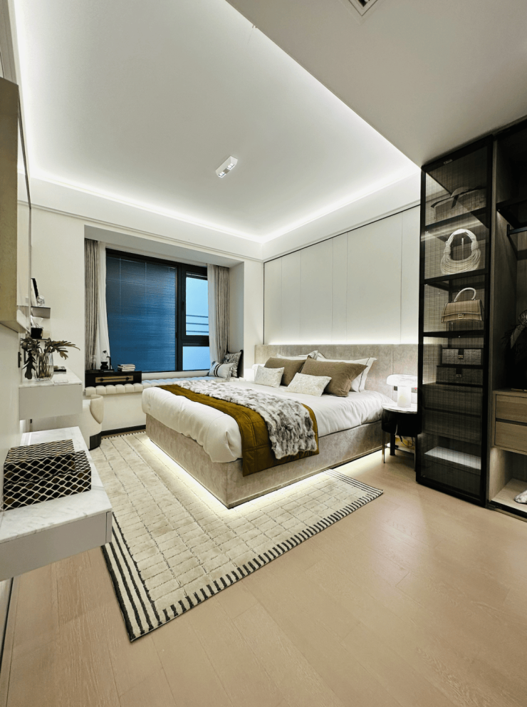 三开间朝南+大尺度景观阳台,视野开阔,全明通透,享受四季温馨阳光。卧室飘窗设计,进行个性化的装点,成为一方专属空间。