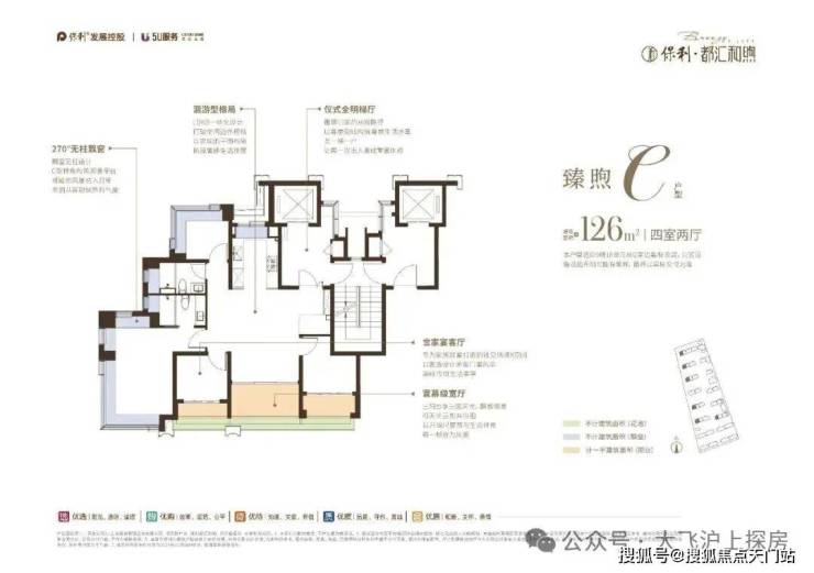 洋房标准层边套赠送面积约30㎡,实得率高达97%,相当于直接赠送约200多万价值,常规项目80%的实得率与之相比差距明显,该户型实际可享受常规155-160㎡的空间尺度。