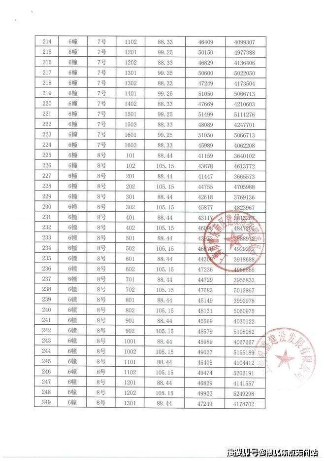 项目一房一价表