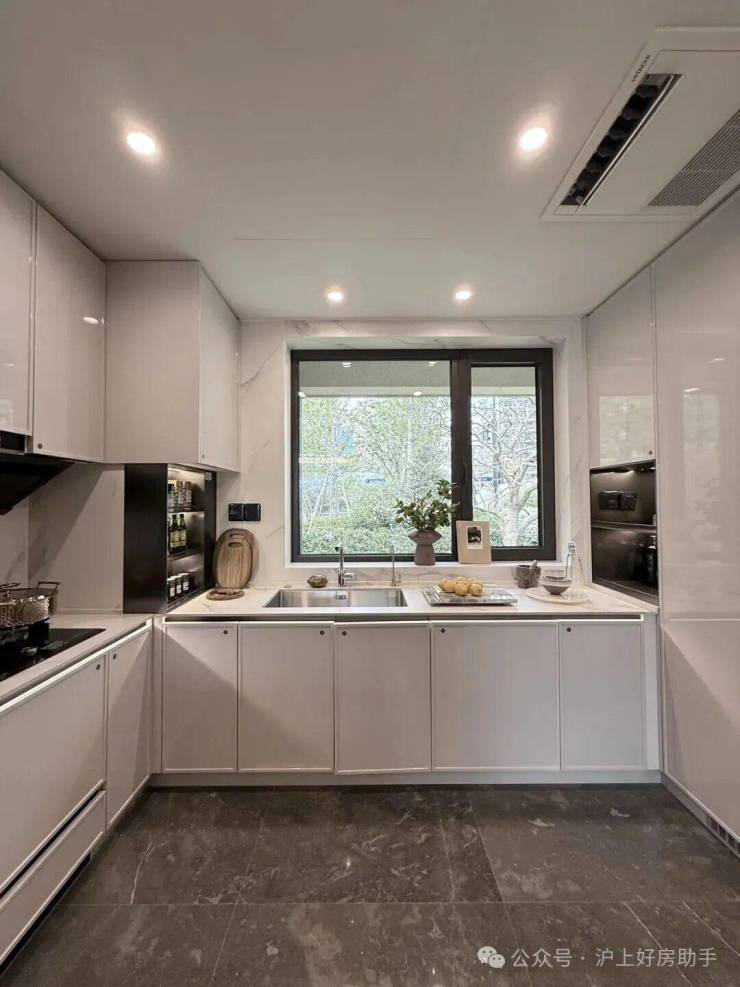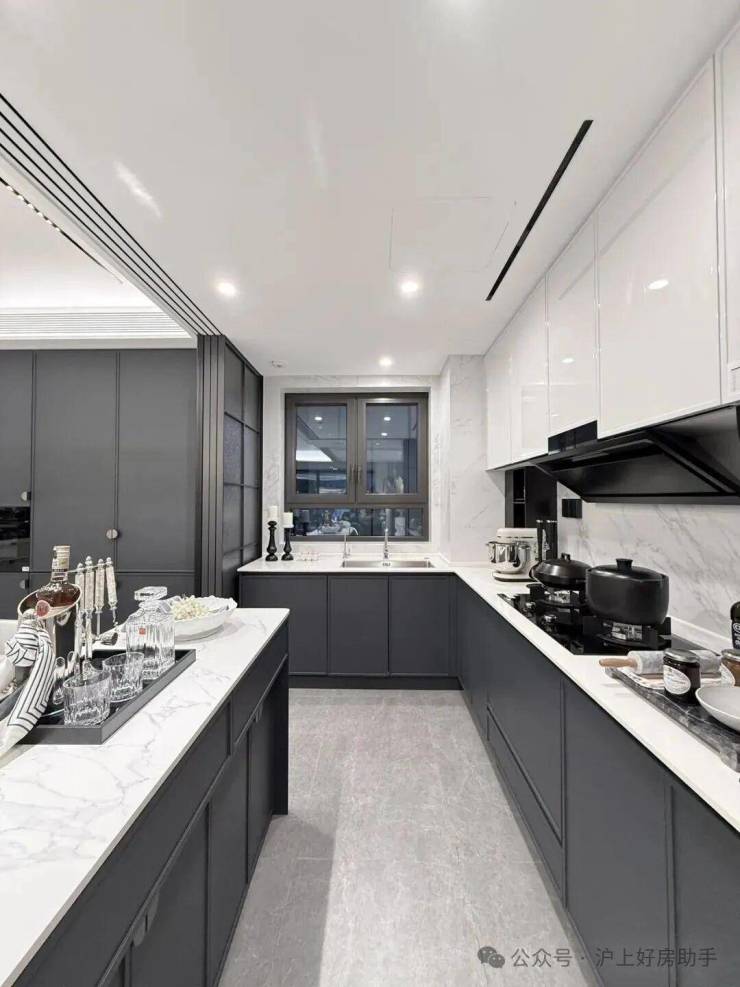 比如,厨房配了珍珠白吊柜、三组抽屉式拉篮合理搭配,调料架收纳、大容量踢脚抽、清洁用品收纳区,米面粮油、碗碟刀叉都可完美隐身。