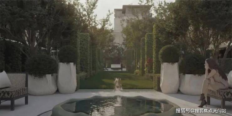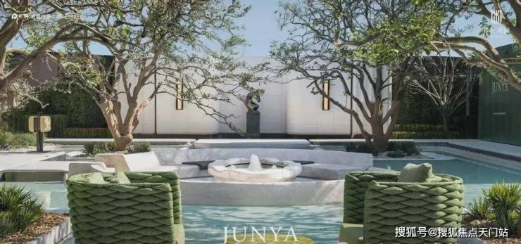 保利·珺园的社区景观以"两环二轴"为核心布局,带来上海罕见双下沉式庭院,并以东方庄园的世界表达为内核,萃取全球六座白马庄园高定度假灵感,将马尔代夫、兰德里、圣特罗佩、塞舌尔、圣巴特岛、巴黎等顶奢度假美学融于一园。