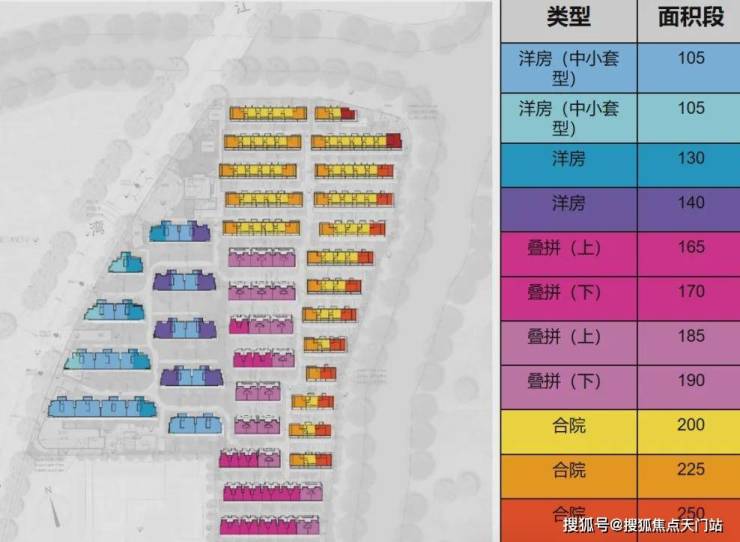 根据流传出来的楼栋平面图来看,项目拟建9栋总高6层的洋房,9栋总高4层的叠墅和17栋联排以及相关的配套施设,总计可售房源约438套