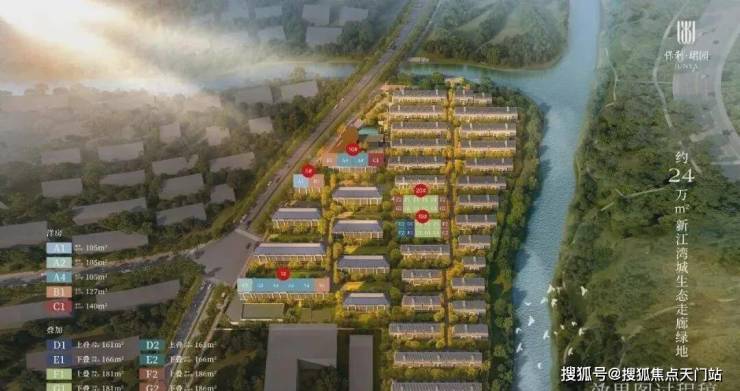 地块本身就处于新江湾城湿地和水系包围之处,从小区的楼栋分布图来看,滨河的基本都是大面积的联排别墅产品,景观应该相当不错。