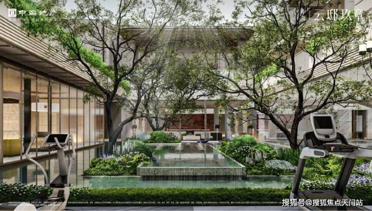 项目南区配备了一个 高端会所 ,内含 健身房,沙龙会客厅,私宴厅、恒温泳池 等。恒温泳池紧邻下沉庭院,大面积落地窗设计打通了室内外的视野,中间无立柱遮挡,为家庭带来了度假式的亲子畅游体验。