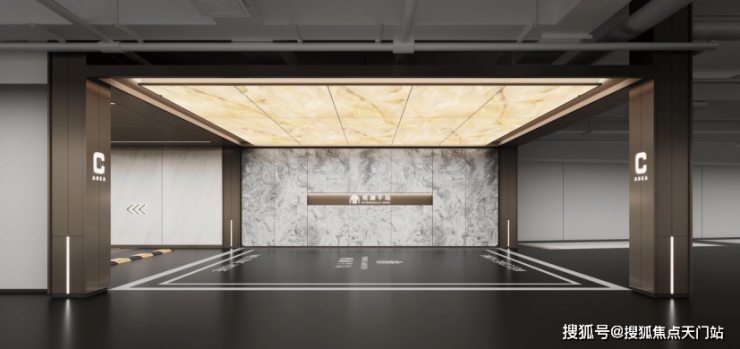 地下车库同样充满豪宅式的审美与质感, 酒店级迎宾式光厅设计理念搭配 顶部透光仿云石装饰,地下车库大理石纹理的古典雅致与现代艺术的灵动韵律升华着业主的归家之旅。