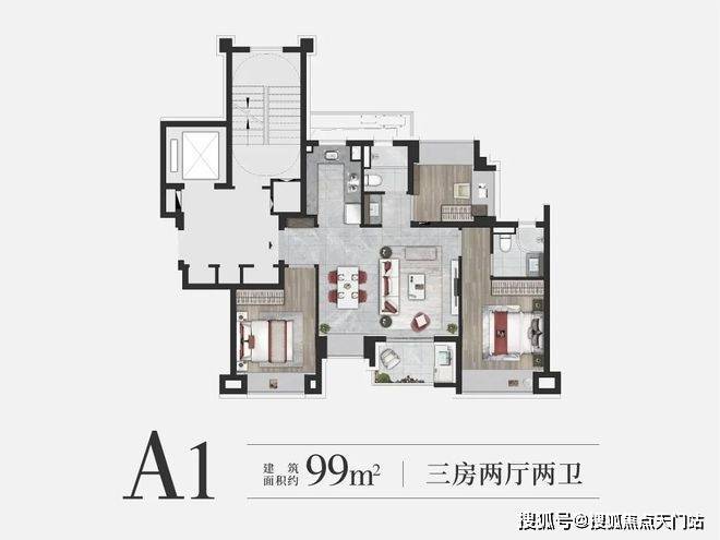 约99㎡3房2卫户型是上海市场中最主流的面积段之一,但项目的户型设计却超脱以往。