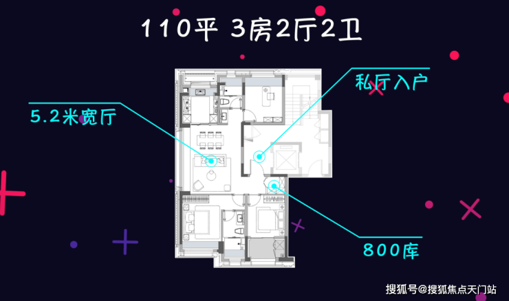 建面约110平三房精准满足功能需求,用千万级出头的总价拥有一套极致视野的功能性三房,私厅入户+800库+约5.2米大宽厅,空间利用更高效。