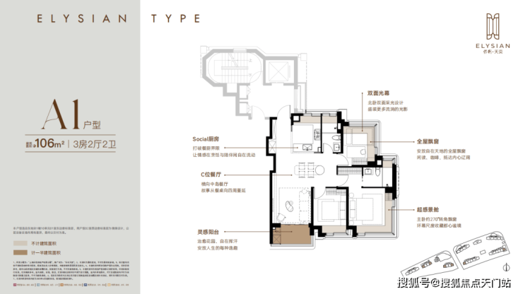 建筑立面转角处匠心设计约270度转角飘窗,打破传统方正格局,拓宽视野边界,将窗外美景尽收眼底。