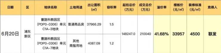 今年第五批次土拍,联发以惊人的41.7%溢价率再次刷新记录