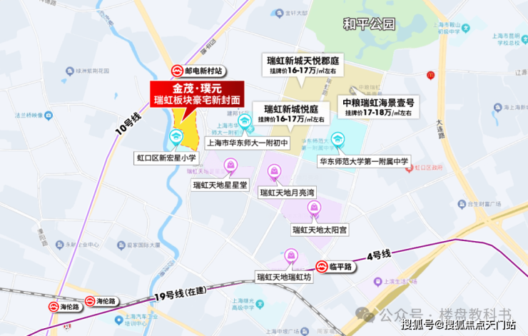 反观瑞虹板块,板块内次新标杆二手房挂牌均价约16-18万/㎡,板块溢价10-23%,这就是瑞虹板块的价值共识!