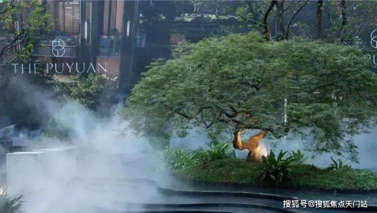 门庭隐现墨绿色泽的「璞熠琉璃」背景墙,经800℃高温淬炼,三十昼夜退火降温,无数遍打磨抛光,光影流转间熠熠生辉;特邀非遗传承人、福记世家第五代传承人夏志平,用十指抟砂古老手工艺独家定制的「璞釉艺陶」,搭配金属釉质感窑花纹理点缀,尽显温润高级。背后为呈现世间至美陶色,一片陶更历经了百次淬炼,配方调整,1280℃高温均匀铺釉。7.5m冠幅的百万级「百年冬青」,乃团队跨越6省17城,百次实地勘察,从近万棵名木中,万里挑一甄选而出,枝干苍劲充满力量;水盘池底的「流金银河」奢石,浓缩着来自宇宙的浪漫,以水刀行纹,让东方的银河让自上而下,层层倾泻。