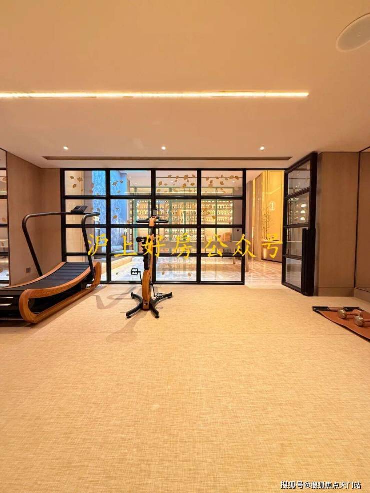 健身房的设计也同样充满了细节。黑框玻璃门的复古韵味,和现代健身空间的功能性做到了完美结合。