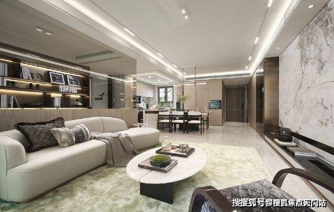此外,99㎡的户型还设计有无界中厅,采用LDKB一体化设计,是典型的“非传统去客厅化”设计,开放式的厨房,这种设计,不仅拉大了视觉尺度,更让你在做羹汤时,能与客厅里的家人随时互动。