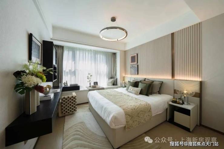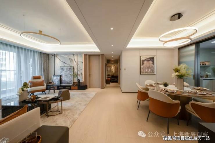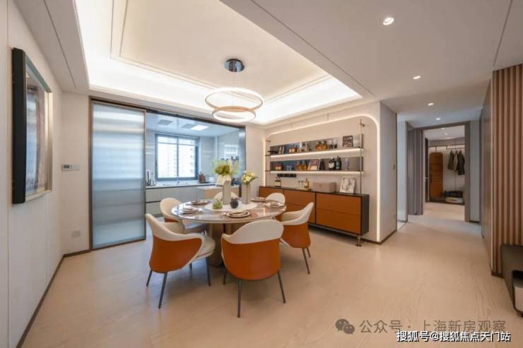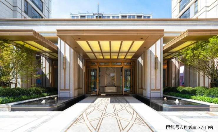 从项目南入口,穿越前厅的潺潺水景,便是与社区建筑完美融合的门厅大堂,其设计简约而不失精致,摒弃繁复细节,彰显出新海派独有的高雅格调。