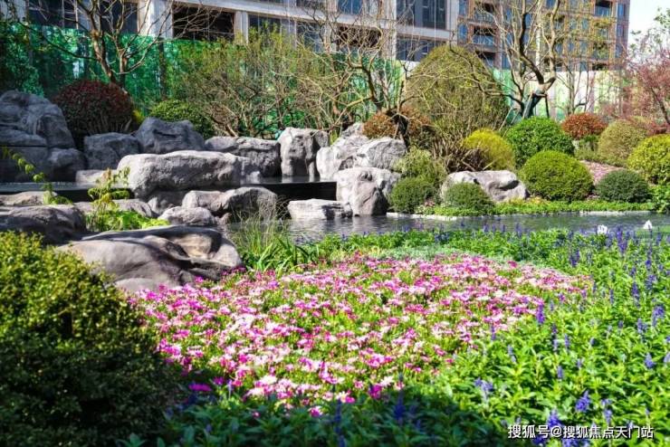 此次示范区共两座园林开放——溪山叠翠及云麓园。溪山叠翠作为穿过门厅大堂的第一重园林,以约287㎡灵动水景与假山结合而成,层层递进让空间更富层次,形成“山石+水景+绿植”环抱式的自然流水之境,将归家的舒适感与松弛感瞬间填满整个身心,疲惫与烦杂烟消云散,一切都是如此的美好与惬意。