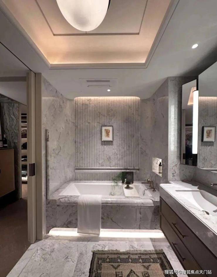 比如,弧形、奢石与灯光等相得益彰且设计感满满的架空层。