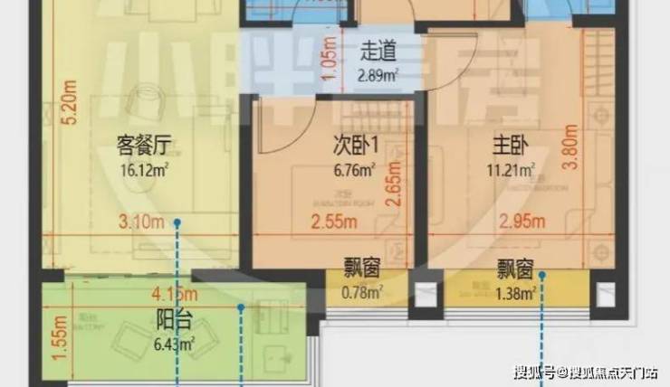即使牺牲了部分次卧飘窗面积的阳台,也仅仅只有约4.15米的面宽。