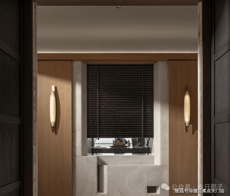 奢材的遴选,是对“权力美学”的深度呼应:玄关处白雪公主玉石,以通透莹润的肌理,像月光倾泻般铺就外滩私邸 “入门即尊荣” 的隐喻;祥云灰水墨岩延展地面的流动诗意,与外滩华尔道夫同源共生;而最为珍稀的,当属主卧背景墙上威尼斯安缦级树瘤木与巴黎宝格丽同源羊皮纸的邂逅——两种天然文明在此对话,营造出一种可被触摸、被感知的官邸奢感。