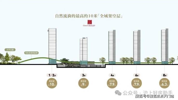 全域约 6.3米 -10 米架空设计,让公园绿意与山水诗韵自然邀约入室,打造公园嵌入式浮岛社区,呈现无界的社区风景。规划缤纷童趣、社区会客厅等多元架空层空间,于此开启生活的温暖缤纷。