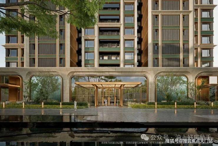 取意豫园中式园韵,打造约 99 米隐奢入口空间结合独立的车马院,风雨廊道与人车分流独立双入口,带来尊贵的归家体验。