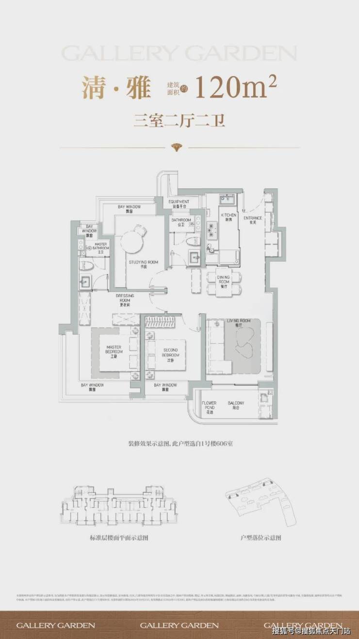 建面约120㎡的户型,定制LDKB一体化宽厅,更舒适的功能定制, 270°转角窗观景套房设计,实现了居住品质与观景的完美结合。