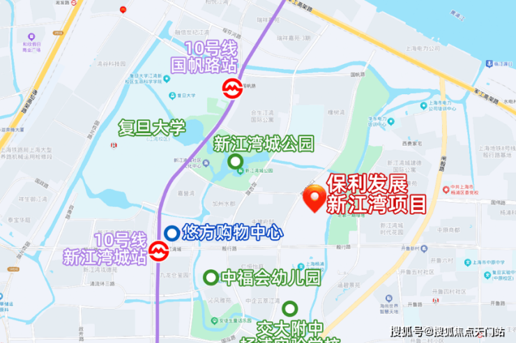 项目直线距离10号线新江湾城站约1.1公里,无需换乘可直达五角场、南京东路、豫园等各大商圈。