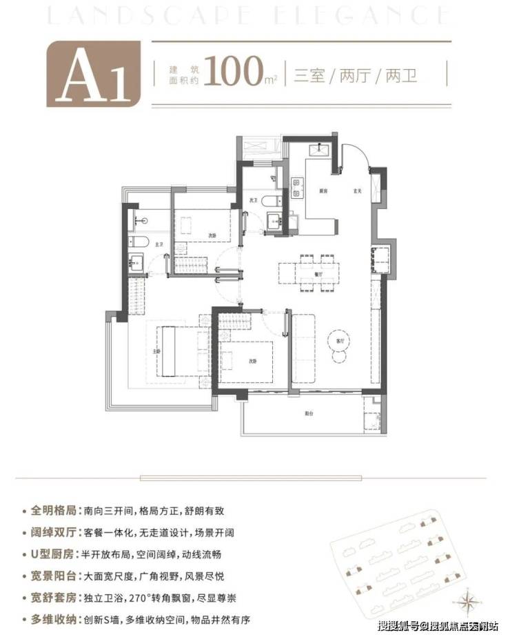 中建山水雅境售楼处电话:400-118-3159 建面约100㎡3房2厅2卫户型