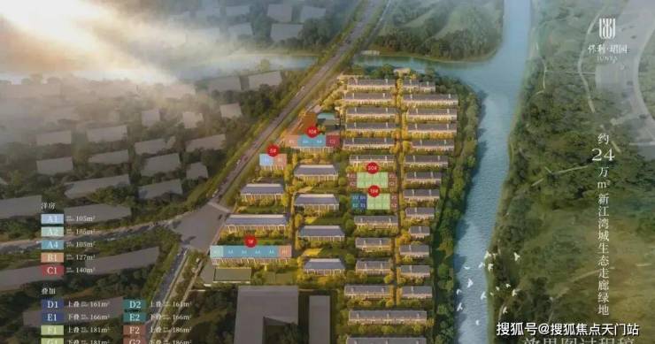 地块本身就处于新江湾城湿地和水系包围之处,从小区的楼栋分布图来看,滨河的基本都是大面积的联排别墅产品,景观应该相当不错。