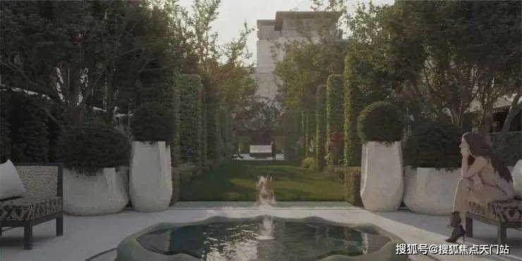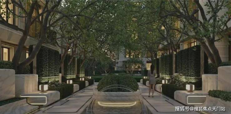 保利·珺园的社区景观以"两环二轴"为核心布局,带来上海罕见双下沉式庭院,并以东方庄园的世界表达为内核,萃取全球六座白马庄园高定度假灵感,将马尔代夫、兰德里、圣特罗佩、塞舌尔、圣巴特岛、巴黎等顶奢度假美学融于一园。