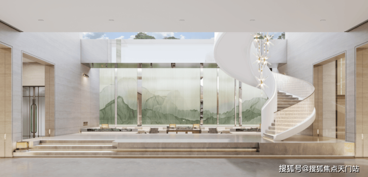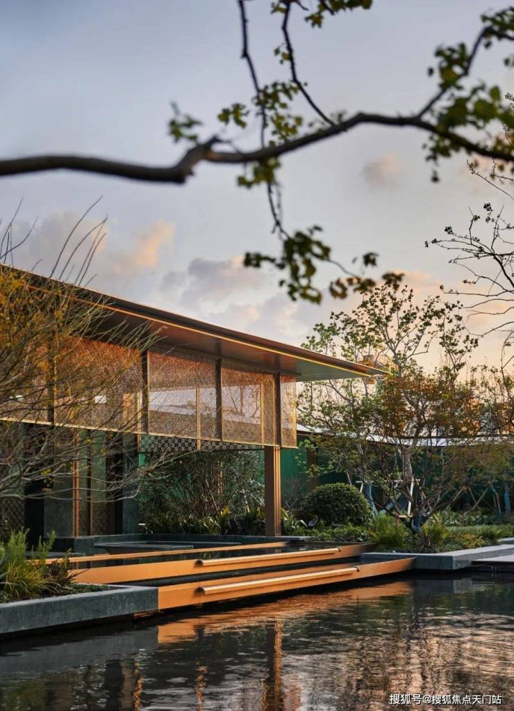 步入庭院,精致会客厅搭配匆匆绿意和层叠水院,颇具层次感的美景让归家的业主瞬间放松,卸下一天的疲惫,也深度诠释了项目归家即是度假开始的设计理念!