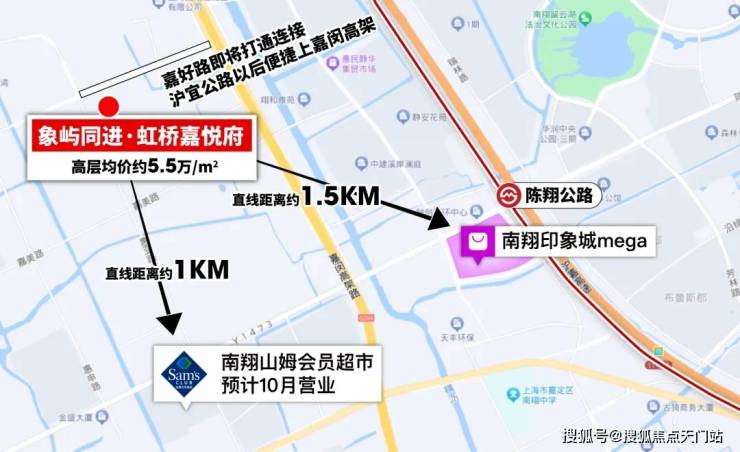 南侧约800米山姆会员店(在建) ;1.5公里南翔印象城Mega;
