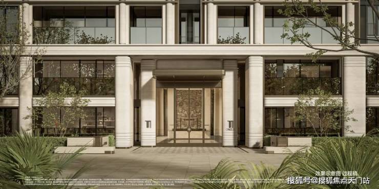 弧形仿石铝板勾勒立面层次,门厅、柱体、台面皆以柔弧过渡,不同材质成多倍投入以达最佳效果,打造温润高贵、典雅内敛的独有气质